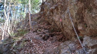 | ☆ ☆ ☆ こちらの登山道は岩が続きます。落ちたら危ないと手元を確認しながら歩きます。 ☆ 核心部の犬帰りに到着しました。巻道にする?その前に鎖と岩の様子を見たいねと恐る恐る(^^ゞ ☆ ☆ ☆ |