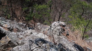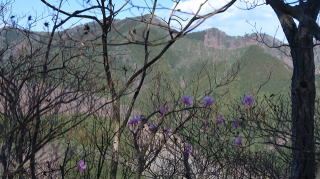 | ☆ ☆ ☆ 小ピークがいくつかあります。ということはアップダウンもですね。 歩きながらピンクのお花が見えました。もしかして♪アカヤシオでした。遠いため写真は撮れず。 ☆ ☆ ☆ この辺りで、2名のおじさまに会いました。今日初めて人を見たなんてはしゃいでいました。 アカヤシオって咲いているのですか?犬帰りってどうですか?と尋ねると 花はぼちぼちで、2週間先が良いとおっしゃっていました。犬帰りは10mの岩と鎖があり無理だと 巻道を登ったようです。私達をを見て、危険だからと巻道を勧められました。 ハイと返事だけはしたが(^^ゞ ☆ ☆ ☆ |
