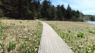 | ☆ ☆ ☆ 大清水8:15…一ノ倉休憩所9:05-10…三平峠10:25…尾瀬沼山荘10;40-55… 長蔵小屋11;40-大江湿原散策-12:50…三平峠13:25…大清水15:15 コースタイム 7時間 ☆ ☆ ☆ 乗合タクシーに乗ろうとしたがまだ出ていないの為、一ノ倉まで林道歩きでした。 予定外に歩くことになり疲れました。 ☆ ☆ ☆ |