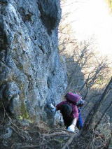 | ☆ ☆ ☆ 登山口から股峠までは急な坂が続き、枯葉は下が見えないので気を使いました。 途中でヘーヘーしてきたけど、なんちゃんはスイスイ登っていきます。 コンパスが違うんですよね〜(^.^;イヤ〜ネェ ☆ ☆ ☆ 股峠に到着しました。反対から若い人が続々と登ってきます。 山には目もくれずに素通りなんです。(・o・)アッ クライミングなのね。 あぶさんが参加していたら、ここで別行動だったかも?なんて話をしてました。 ☆ ☆ ☆ |