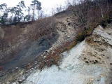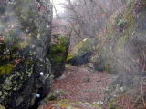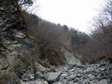| ☆ ☆ ☆ 思いがけず滝見が出来ました。雨が降っていましたが、歩いていくとなにやら白い物体が舞い降りてきました。 ひぇ〜ゆき〜〜、季節はずれの雪にビックリしました。どうりで息が白い訳でした。 ここは日本列島を縦に二分するフォッサマグナの大断層が露頭しています。素人が見てもよく分かりました。 ☆ ☆ ☆ |