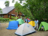 | 17日 13:35鳩待を出発。既にポツリときてました。山ノ鼻に到着しすぐテントを張りました。 二つ張りましたが料金は一人800円でした。 時間もあるので原へと向かいました。 (・_・)......ンニッコウキスゲは何処?探しましたが夕立が降ってきたので慌てて引き返しました。 それから雨は断続的に降ってきました。 テント泊だったので夜中は浸水しないかしらと気がきではありません。時々雷も(/∇≦\)キャーコワィ! |
