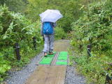 | 天気予報で雨、朝はもちろん雨でした。`s(-・-;) うーん とりあえず現地に行って決めようと出かけました。 大清水の駐車場に到着。降ってる〜(;^_^A ここまで来て帰るのは‥カッパを着、傘を差しながら出発です♪ |