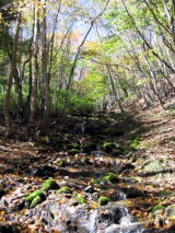歩くにつれ紅葉の色が濃くなりますが、落ち葉になってるのが多いですね。