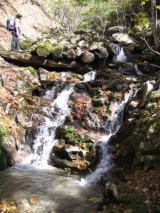 少し歩くといきなり滝が現れます。写真を撮りながらどちらを登るのかな?とキョロキョロ