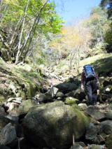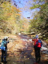 進むにつれ徐々に水量が少なくなりました。そこで一休みです。