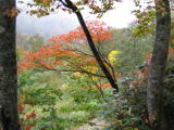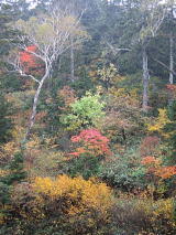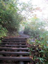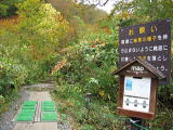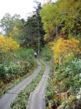 | ☆ 登山道からは、紅葉がチラホラ見えるようになりました。 木道は湿っていて滑りやすいです。 すれ違うパーティでは、必ずと言っていいほど滑ってる人がいました。 σ(o^_^o)も三平峠を過ぎた辺りで…ドシン(^^;; ☆ |