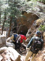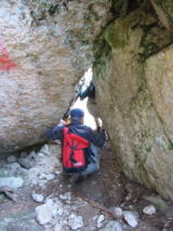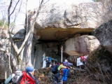 岩をくぐります