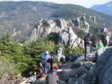 一人ひとりじゃないと登れないのですが、反対から下りの団体さんが来ました。待ってますと言ったは良いけど、なかなか途切れません。
