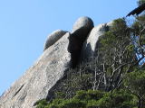 大岩に頼りない木の棒が数本見えました。これで岩を支えてるのかな〜とチョット笑えました。