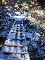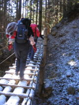 木の橋は雪がついているので慎重に歩きます。滑らないように、落ちないように。。。