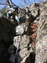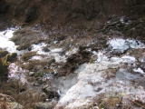 沢に降りてチョットだけ登るのですが、足元は凍っています。