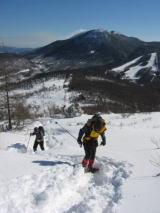 | ☆ 大霧山オフでスノーシューに行きましょうと話が出てました。 参加の皆さんは乗り気の気配でしたが今年は無理かな〜…それが実現しました。 気になるお天気は快晴…おかげで日焼けしまくりでした(^^;; ☆ 駐車場9:05〜リフト上出発9:50〜湯の丸山頂11:8-11:15〜ピーク11:27-11:37〜山頂昼食出発11:50-12:30〜駐車場14:00 ☆ |