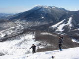 | ☆ ☆ ☆ 山頂に到着♪とんがり山の烏帽子岳は真っ白でした。ぐるりと回って眺めを楽しみます。 そしてもう一つのピークに向かいます。歩きながら、ここはお花畑だったわね〜と懐かしさがよみがえります。 ☆ ☆ ☆ |