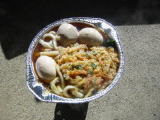 すると隣ではフライパンを出しお料理を作ってます。