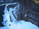 雪が凍り付いてる階段