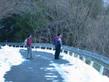 トチノキ広場までは所々凍った車道を歩きます。