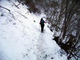 | 浅間嶺に向かう前にチョット寄り道です。 払沢の滝、氷瀑してるかな?と期待していたのですが、その気配はなしでした。 ここの駐車場って見た目は分からないのですが表面が凍っていました。 歩いていると危うくつつ〜〜と。レポネタの一歩手前で済みました。 |