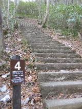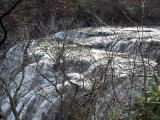 | 袋田の滝を見てから、生瀬の滝を見るためハイキングコースの階段を登ります。 間もなく約1名のお喋りが消えフーフーと聞こえてきました。あっバテはじめてると(クスクス) 350段登っていくと生瀬の滝が見えました♪その左上に一軒の家が見えます。 わっ凄い所に住んでるのねと驚きました。 滝を見た後 さらなる階段を登ろうか迷いましたが、滝はここで終わりなので引き返します。 |