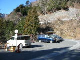 | 集合は日向大谷の駐車場です。走った事がないので道の駅でみなまるさんと合流しました。 日向大谷の駐車場には既に鳶八さん・フタちゃんがいました。そして両神山荘のワンちゃんも(^.^; 9時に出発し、いきなり道の脇から下っていきます。 そしてアイゼンを装着し、まずは腰越の滝を見に行きました。いいですね〜〜 |