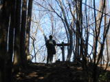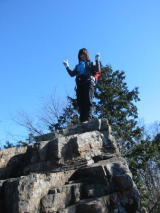 | ☆ 男坂は一気に登れないので、振り返っては周りの景色を眺めました。 あれはさっき登った、「武川岳」と見るのも楽しかった。 そして登りきった高い岩場でシャッターを押してもらいました。 なんちゃんはあきれてると思うけど(^^;; ☆ |