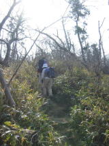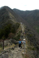 | ☆ 山頂に到着です。とても広いんですよ。 さらに進んで海が見える場所でランチタイムです。 ☆ 「かんぱーい」の声が聞こえたのでそちらを見ると 女性グループがビールで乾杯してました。 今日のように暖かい日は、いいかもね。と横目でチラリ(^^;; ☆ お腹も満たされたので下山の準備をします。 下山は灯台コースです。 ☆ |