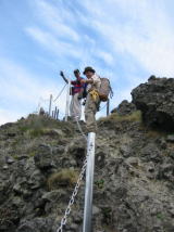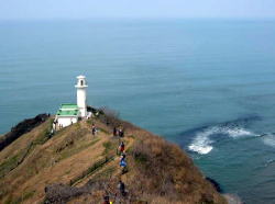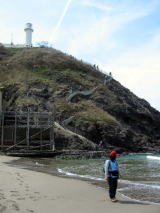 | ☆ 灯台コースは急坂を下ります。下のほうに行くに従い、岩の道になります。 途中の眺めは良いですね。灯台や海がとてもきれいです。 それに海からの風…潮の香りがとても心地よいです(^^)v 山登りで初めて砂浜を歩きました。 ☆ |