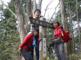 | ☆ 大岳山荘からの眺めは良いですね。 欲を言えば晴天だったらと… 休憩後は神社を経て山頂を目指します。 巨木が多く静寂な世界でした。 ☆ とのんびり気分も打ち消されるほどの急坂・岩が現れました。 きついね〜と登っていきます。 山頂到着ε-(;ーωーA フゥ… |