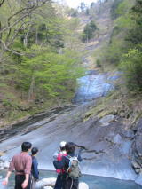 | ☆ 両門の滝に着きました。ここでランチタイムです。 お腹が空いたので滝を見ながら食も進みます。 食べながら、この先はどうしましょうとの話になりました。 ヤゲンの滝が少し先なのですが、道が険しそうです。 時間も大丈夫そうなので行きましょうと話がまとまりました。 ☆ どこに道があるの?コケのついた倒木をくぐったり、飛び越えたり いつも以上のアドベンチャーです。。。それも楽しかったりして(^^;; そして危険箇所にロープを張っていただきやっと到着しました。 またまた素晴らしい〜〜と感激です。 ☆ |
