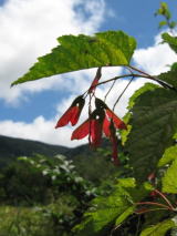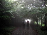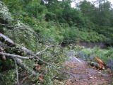 | ☆ なんちゃん、えーちゃんと三条の滝を見に行きましょうとの話になりました。 えーちゃんは尾瀬も初めてで、とても楽しみにしています。 所が大型台風14号が通過中です。。。 ゲートを抜けて鳩待峠に向かいますが、途中強風で折れた木が道を阻んでいました。 生の木はなかなか折る事が出来ません。 枝を足で踏み、やっとの思いで通過できました。 ☆ 鳩待峠に着きました。駐車場には前日からの車が2台あるだけ…寂しい 車から降り、外の様子を伺ったらものすごい風、周りの木がしなっています。 相談の上、危険だからと引き返すことになりました。 初めて訪れた尾瀬がこんな事になって、えーちゃんはがっくり (o・_・)ノ"(ノ_<。) ☆ |