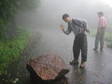 | ☆ このまま帰るのはと行き先を検討しました。 吹割れの滝に寄る?と駐車場に着いたとたん大雨が降ってきました。 降りることも無くまた移動です。 折角お休みを取ったのだから、何かみたいよね。で船尾の滝に向かいました。 所が駐車場から霧…落石前でお茶目にポーズのえーちゃん(^^;; 滝まで行きましたが、音だけで姿が見えません。 解散前に、道の駅でケーキセットを食べながらおしゃべり♪ 目的は果たせなかったけど、これはこれで楽しいかな(^^; ☆; えーちゃん、楽しみが伸びたけど是非行きましょうね。 なんちゃん、運転をお疲れ様でした。 台風のお陰でいつもにない思い出が出来ました(^^)v ☆ |