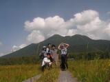 燧ケ岳をバックに皆さんと(えーちゃん提供) |
