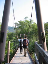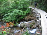 | ☆ ヨッピ橋に到着。休憩はここか東電小屋にしようか相談した所、20分先の小屋に決まりました。 家族連れ数組とすれ違いますが、ヨチヨチ歩きの子供さんもいたのにはビックリしました。 小屋で休憩し温泉小屋に向かいます。この間の木道は荒れて、すれ違う人も少なくなりました。 ☆ |