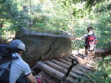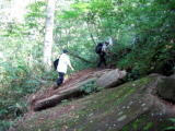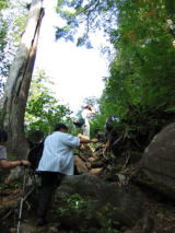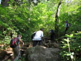 | ☆ 平滑の滝からは道が険しくなってきます。途中すれ違った人からはあと ふた踏ん張りですよ〜 と励まされ、ひと踏ん張りじゃないんだ〜と話しながら歩きます。 すれ違う人は若い女性も多いです。そんな時はメンバーの顔がほころんでる様に見受けられました♪ ☆ |