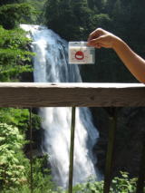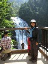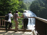 | ☆ 急な階段を降り滝見台に到着♪水量の多い三条の滝がバーンと目の前に 凄いな〜とそれぞれが身を乗り出し滝を眺めます。 下に降りられるのかな〜と眺めたりもしてるよぉ(^^;;おいおい 喜んでる皆さんを見るとσ(o^_^o)も嬉しくなります。 ☆ |
