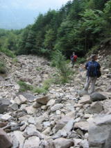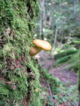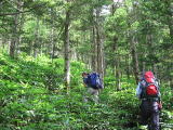 | ☆ 蓼科山荘まで下山します。その間、山の会かな〜?次から次に登ってくる人とすれ違います。 ふーふーしている人、山頂までどの位かかりますと尋ねる人それぞれです。 頑張って下さいと言いつつ、山頂であの人数と出くわさなくて良かったとホッとしました。 ☆ 天祥寺原に向かいます。暗い登山道を抜けると目の前が明るく開けます。 岩がゴロゴロしてる道をしばらく進むと、歩きやすい道へと続きます。 キノコもチラホラ、ハナイカリやアザミがたくさん見受けられます。 ☆ |