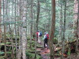 | ☆ そして、双子池・双子山へと向かいます。 池は透明度が高く、コバルトブルーが綺麗です。池の底にある石も良く見えました。 ☆ 急な登山道をまた登ります。この辺りは「サルオガセ」が垂れ下がってます。 ガスっていたので、とても幻想的ですが、写真を撮るのは難しいです(^^;; 山頂はとても広く草原のようです。先ほど登ってきた蓼科山が雲の隙間から見えました。 ☆ この辺りでポツポツとしてきました。駐車場は直ぐそこなのでややペースを速めました。 セーフ。車に到着したとたん、大雨になりました。持ってくれてよかった〜 ☆ |