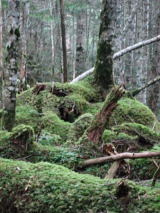 | ☆ 食事も済み、双子池へと向かいます。 この間の林は、しっとりした苔、空気も澄んでいて良いですね。見ていて飽きません♪ 苔を見ながら撮りながら、足は自然に止まります。 ☆ |