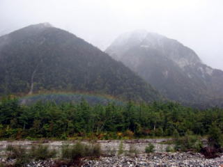 ☆ ☆ ☆ 明神館を過ぎ少し歩いていくと虹が見えました。わぁ〜綺麗と立ち止まりパチリ。 徳沢までは「奥上高地自然探勝路」になっているので平坦で歩きやすいです。