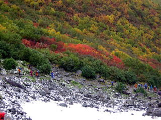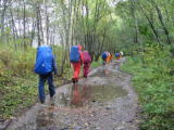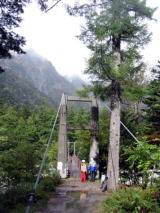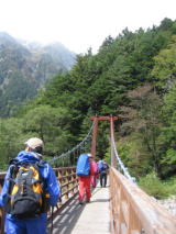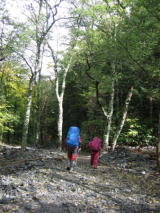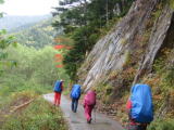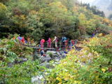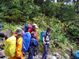 橋を渡ってから、やっと登山道らしくなって来ました。人が凄いです。すれ違いもなかなかとぎれません。 そのうち、前の方でmakotoさんが誰か知り合いに会ったらしいです。
