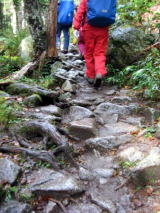 橋を渡ると岩だらけの道になりました。人が絶えることが無いので、前の人について登っていきます。