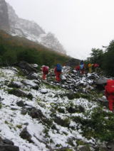 ここでパパさんに電話を入れました。すると昨夜は穂高に雪が降り遭難者が出ているとの事でした。