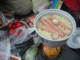 お天気が良ければ紅葉でも撮りますがこれではチョットね。 で食事の時間になりました。まだ16時なんです。 乾杯をし、ラーメンや皆さんの持ち寄りで賑やかになりました。 アルコールで体が温かくなる頃は口もなめらかになったしね♪