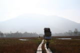 | ☆ ☆ ☆ 山の鼻まで下っていくと今回はヘリの音が賑やかです。ここでは小鳥のさえずりが聞こえるのですが… 途中木道の工事をしている人に足止めされました。先ほどのヘリが近くまで飛んできました。 掛け替えた木道などの物資を搬送するためでした。一度目は失敗したらしく、旋回して再度トライ。 今度は成功だねと行く末を見ていました。その間も紅葉は綺麗でした。 ☆ 階段から平らな木道歩きになると、紅葉がキレイだね〜と回りをみる余裕が出てきました。 ☆ ☆ ☆ |