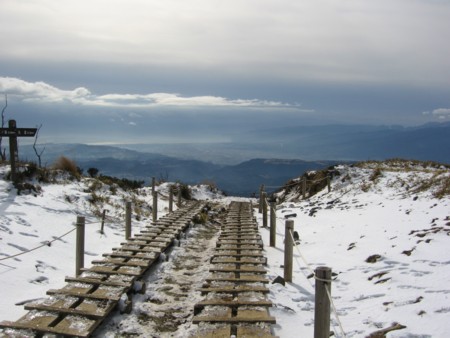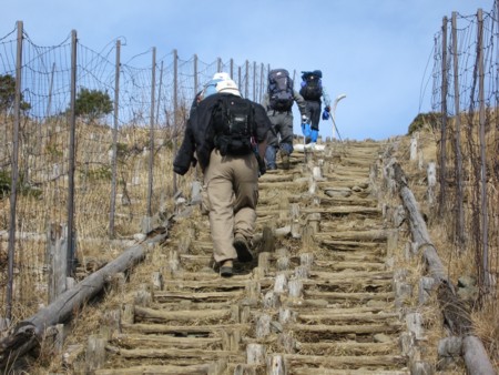 この階段を登ると山頂です。去年は風が強くて吹き飛ばされるようでした。