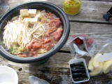 さてお食事タイムになりました。今回はえーちゃんが鍋焼きをまとめて用意したとの事ガスを出し始めたら…