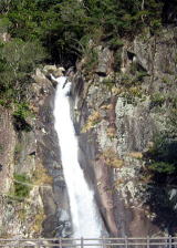 | ☆ ☆ ☆ 去年も本宮大社までこのバスに乗りました。川向こうに滝が二つ、左手にも大きな滝があったので いつでも撮れる様にカメラを用意してました。あっ見えた。で右側に移動します。パチリ。 二つ目も見えましたが山の谷間になるので、ボケてました。さてとあとは左側だわと前方を見たら滝が♪ 今度は左に移動します。バスの案内が聞こえました。危険ですのでバスが止まるまで移動しないように…(^^;;アリャ そろそろ滝が見えるはず。♪見えた〜でパチリ。後はのんびりと周りの景色を眺めてました。 ☆ ☆ ☆ |