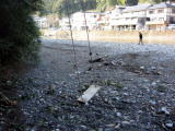 | ☆ ☆ ☆ トンネルを抜けると川湯です。ここまで30分と聞いていたのに1時間かかりました。長いなぁとは思ってましたが… 今日は亀屋旅館に宿泊します。旅館に荷物を預け、近くを散策することにします。 ここは川原に大きな仙人風呂がありますが、増水で流されてしまったため今回はありませんでした。 それでも所々にある露天風呂に手を入れると温かいです。丸見えなので入る勇気はないですけどね(^^;; ☆ ☆ ☆ |
