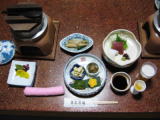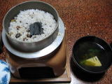 | ☆ ☆ ☆ 散策後、旅館に戻り汗を流します。作りはチョットひなびた感じですが、接客の良い旅館です。 温泉は独り占めでした。夕食は山の幸海の幸をご満悦〜〜。お釜の五穀米には炭が入っていたり 茶碗蒸しは柑橘系の器に入ってます。これって三宝柑なんですって。三つの宝は縁起が良いですね。 茶碗蒸しを味わって食べました。う〜〜 お腹が一杯です♪ ☆ ☆ ☆ |