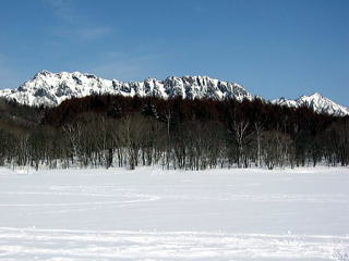 林を抜けると目の前が開け雪山が見えました。素晴らしいパノラマにウットリしてしまいます。